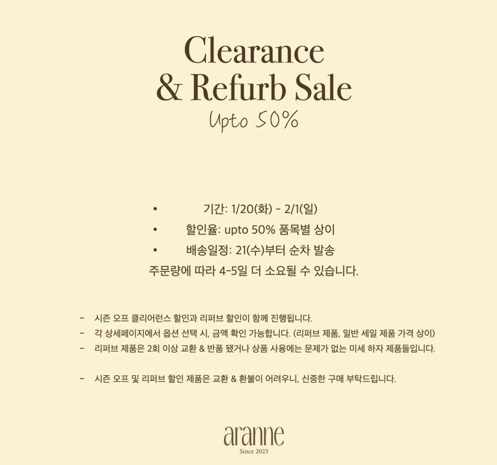 (아예 다른 제품으로 교환 원할 시, 카카오톡 채널 @aranne 로 연락주세요.)